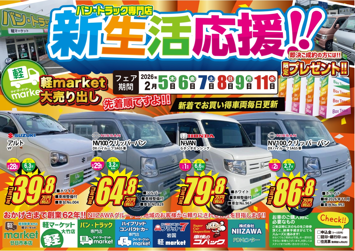 中古バン・トラック専門店 軽マーケットを運営する株式会社NIIZAWAは、創業60年の歴史ある会社です。自動車販売事業を「より透明性の高い、お客様に満足していただけるものにする」というミッションのもと自動車販売事業をスタートしました。