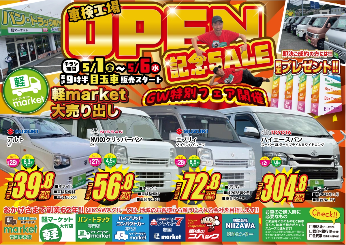 軽マーケットは、廿日市・大竹・岩国・広島市エリアのお客様に選ばれ続ける店舗を目指していきます!