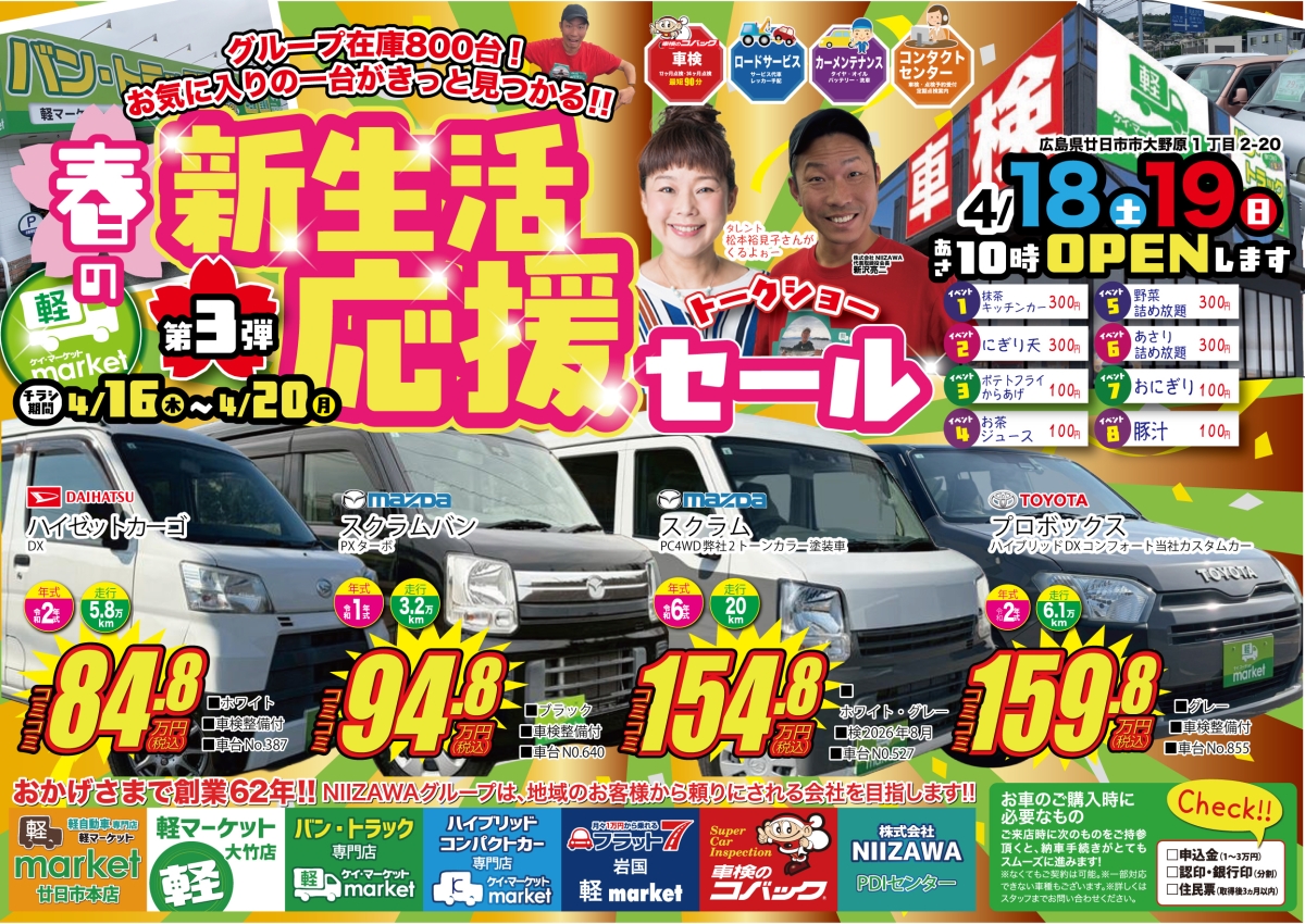 軽マーケットは、廿日市・大竹・岩国・広島市エリアのお客様に選ばれ続ける店舗を目指していきます!